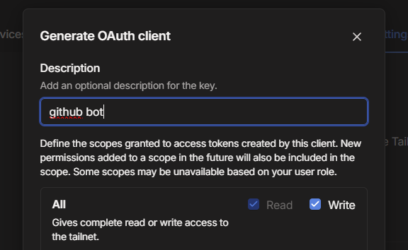 Using tailscale to allow Github action bot to connect to internal network resources.