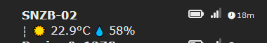 {"ZbInfo":{"0x127C":{"Device":"0x127C" ,"Temperature":23.03 ,"Humidity":56.29 ,"Reachable":true ,"BatteryPercentage":47,}}} //ZBInfo