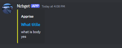When using this option, it will wrap the markdown in an embed rather than just code. The embed will have a color based on what type of notifications (error, warning, success, info).