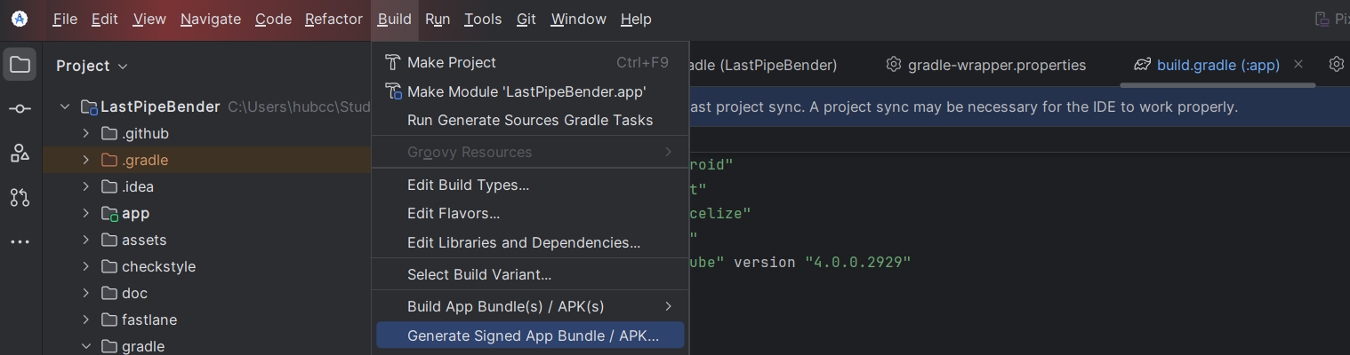 The file to be modified will be located in (at least for PipeBender) LastPipeBender/app/build.gradle